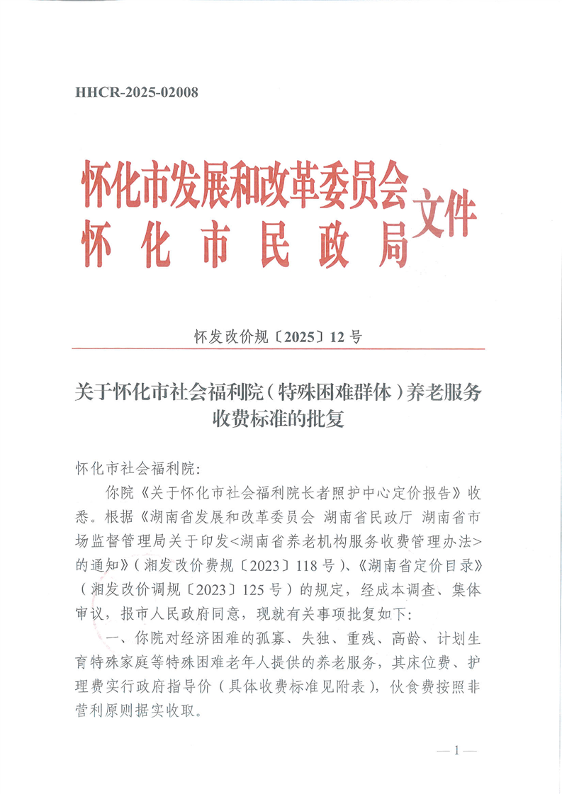 文號:懷發(fā)改價規(guī)〔2025〕12號