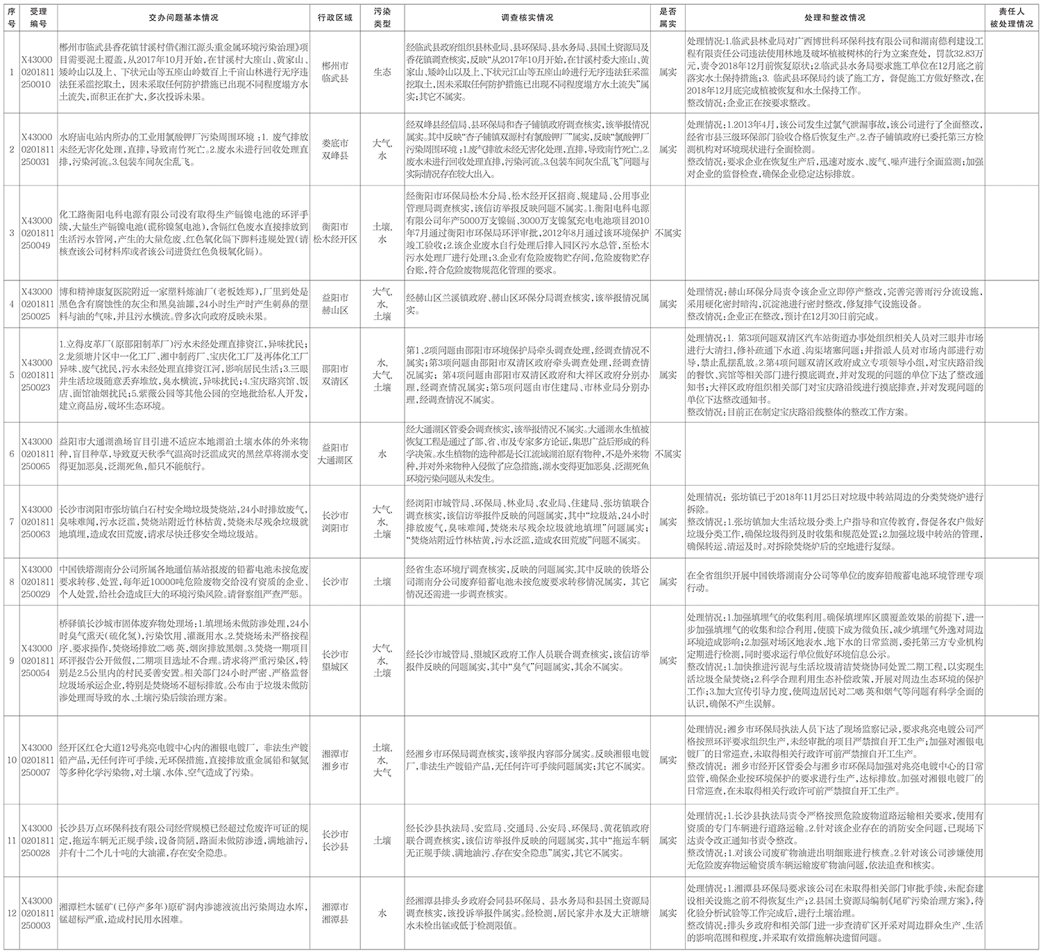 2018年11月29日,我省收到中央第四生態(tài)環(huán)境保護(hù)督察組第三十批轉(zhuǎn)辦重點(diǎn)信訪件12件,按要求交由相關(guān)市辦理,現(xiàn)將辦理情況予以公開。