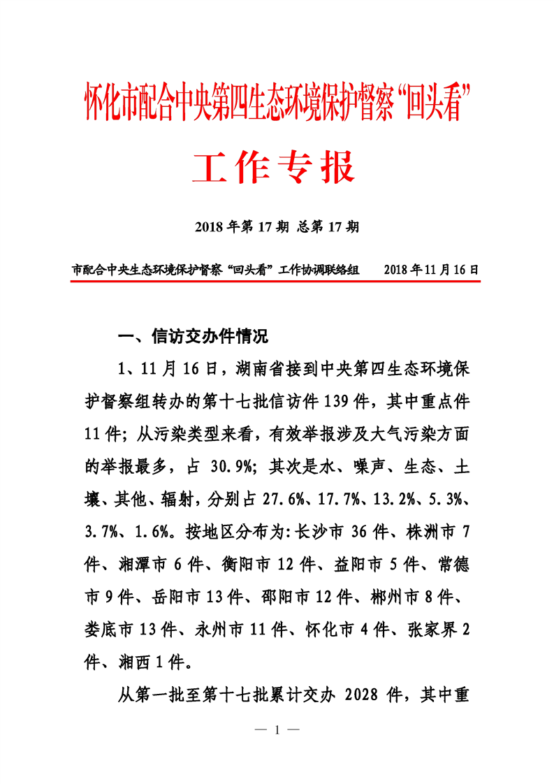 第十七期 懷化市配合中央生態(tài)環(huán)境督察回頭看工作專報