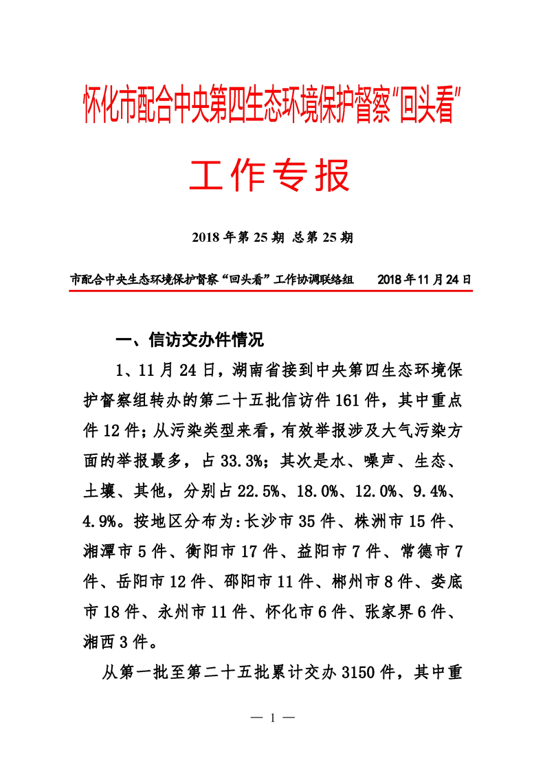 第二十五期 懷化市配合中央生態(tài)環(huán)境督察回頭看工作專報(bào)