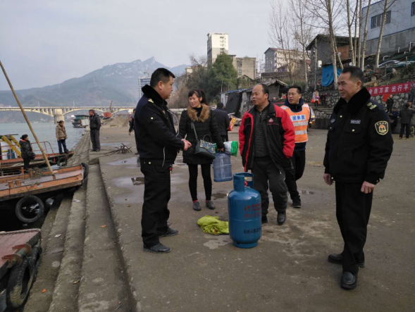 1月31日,春運(yùn)第11天,正值懷化市溆浦縣大江口鎮(zhèn)農(nóng)歷2018年最后一個(gè)趕集日,人多船多,溆浦縣地方海事處執(zhí)法人員一大早來到大江口碼頭開展現(xiàn)場(chǎng)安全檢查,禁止“危險(xiǎn)品”上船。