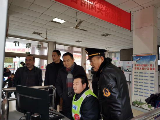 1月14日,通道縣春運(yùn)領(lǐng)導(dǎo)小組組長(zhǎng)、分管交通副縣長(zhǎng)鄭紫庭同志帶隊(duì)深入道路運(yùn)輸企業(yè)、汽車(chē)站、隴城鎮(zhèn)等地,現(xiàn)場(chǎng)督導(dǎo)春運(yùn)道路運(yùn)輸行業(yè)安全生產(chǎn)工作。