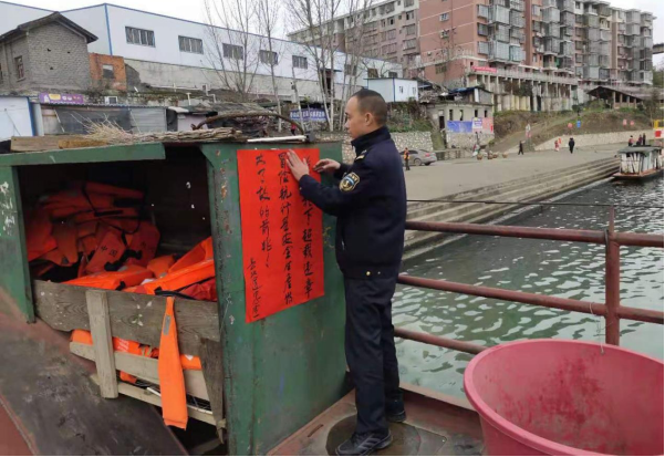 圖8 會(huì)同縣水運(yùn)事務(wù)中心工作人員在漠濱碼頭張貼春運(yùn)安全宣傳橫幅