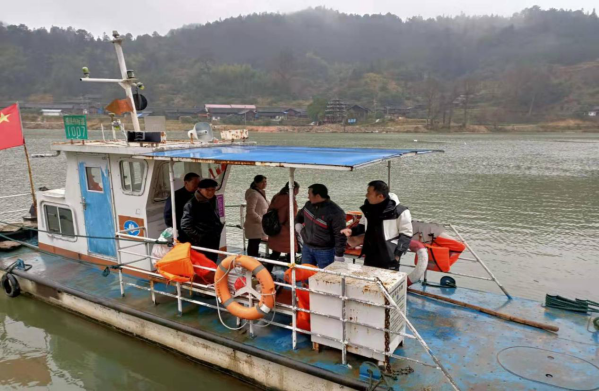 圖9 會(huì)同縣水運(yùn)事務(wù)中心工作人員在漠濱碼頭檢查簽單發(fā)航情況