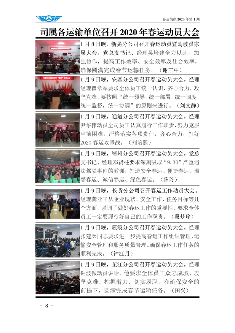 懷運(yùn)集團(tuán)春運(yùn)簡報(bào) 2020 年第 1 期