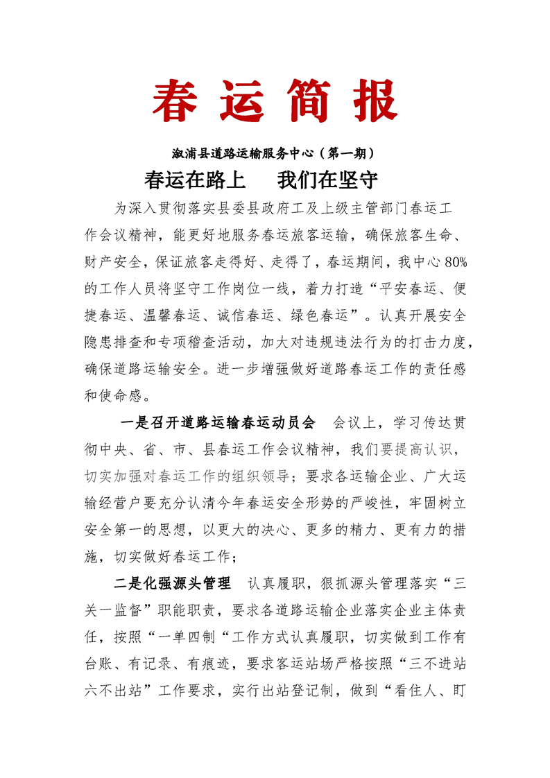 溆浦縣道路運(yùn)輸服務(wù)中心春運(yùn)簡(jiǎn)報(bào)(第一期)
