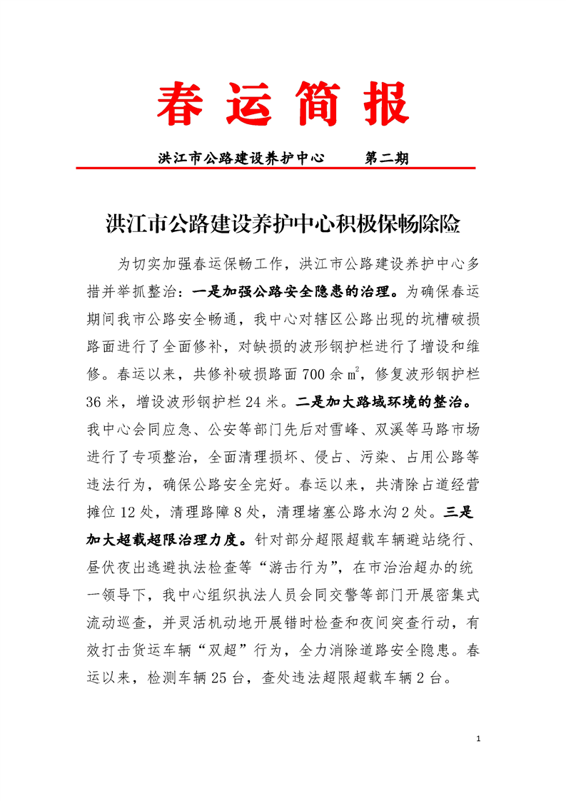 洪江市公路建設(shè)養(yǎng)護(hù)中心春運(yùn)簡報(bào) 第二期