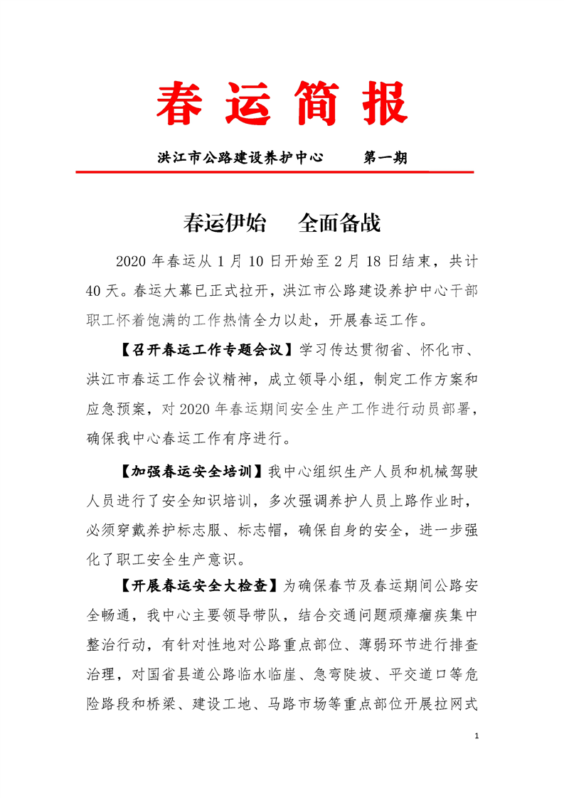 洪江市公路建養(yǎng)中心春運簡報第一期