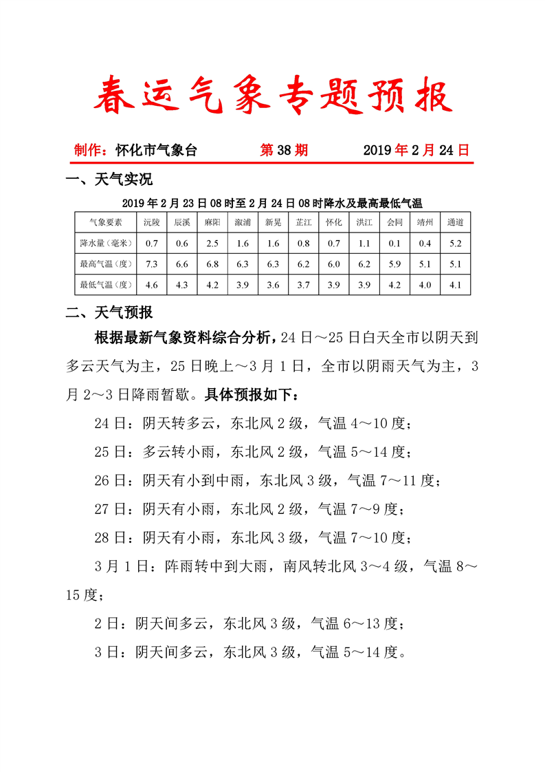 春運(yùn)氣象專題預(yù)報(bào)(第38期)