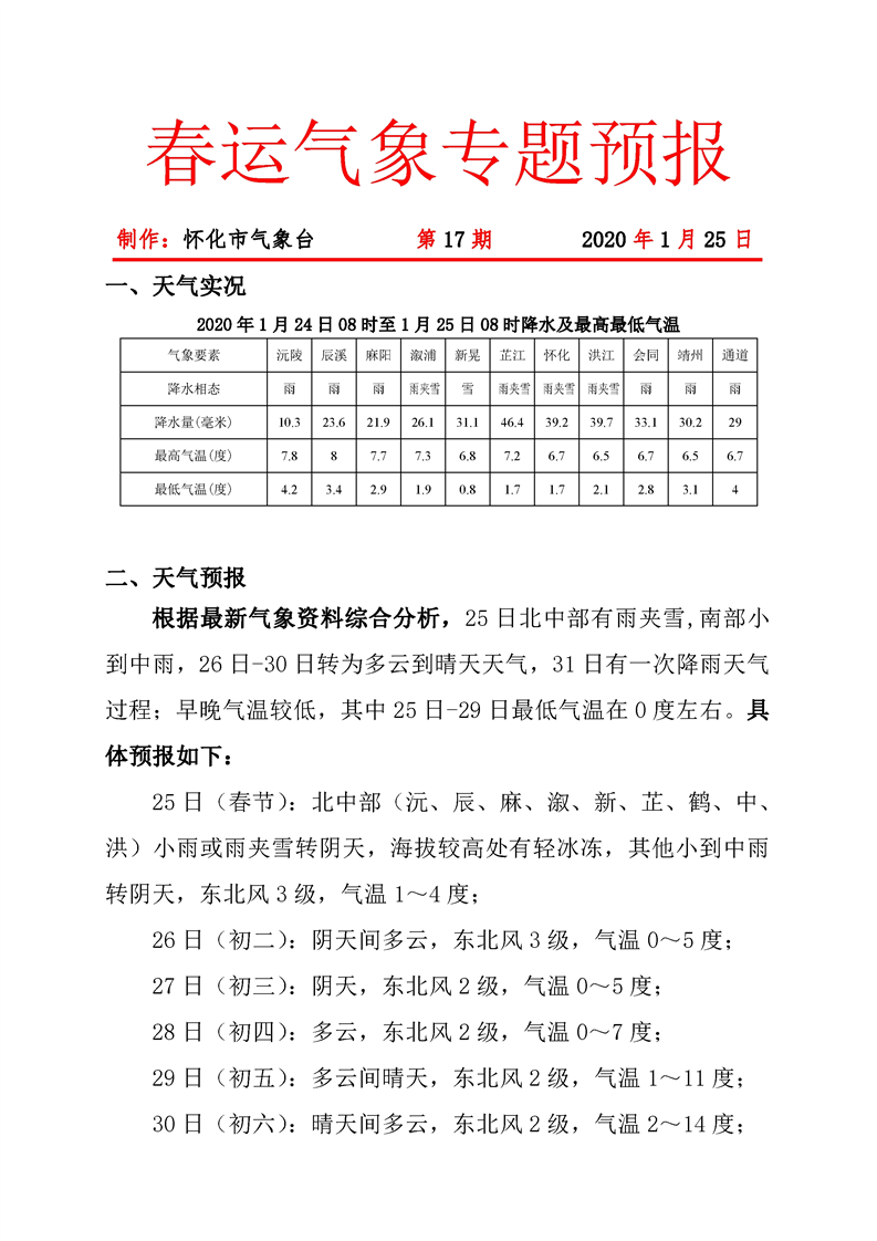 春運氣象專題預報 第17期