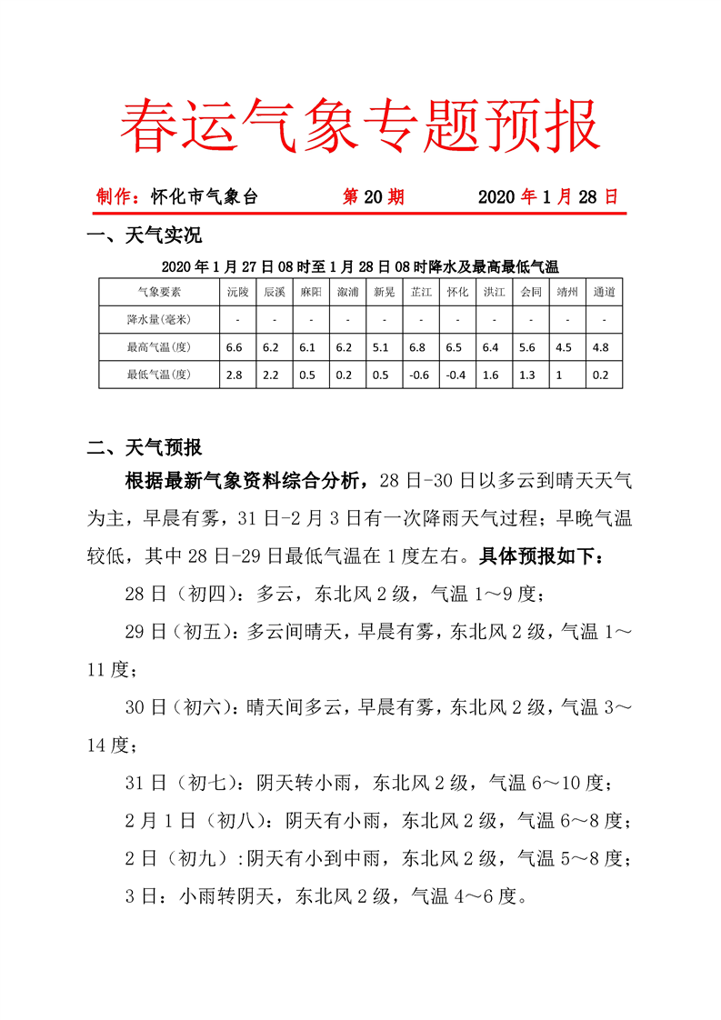 春運(yùn)氣象專題預(yù)報(bào) 第20期