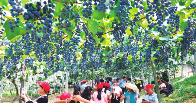 2013年9月16日,市內(nèi)外賓客在中方縣桐木鎮(zhèn)大松坡村葡萄園采摘葡萄。 (陸曉鵬 攝)