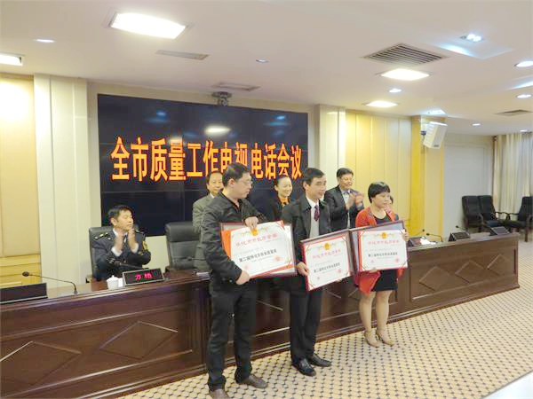 李暉市長(zhǎng)代表市委市政府向獲獎(jiǎng)單位表示祝獲并頒發(fā)證書(shū)牌匾,鼓勵(lì)企業(yè)在各自的行業(yè)和領(lǐng)域,嚴(yán)格質(zhì)量控制和管理,帶動(dòng)全市質(zhì)量工作水平上臺(tái)階。