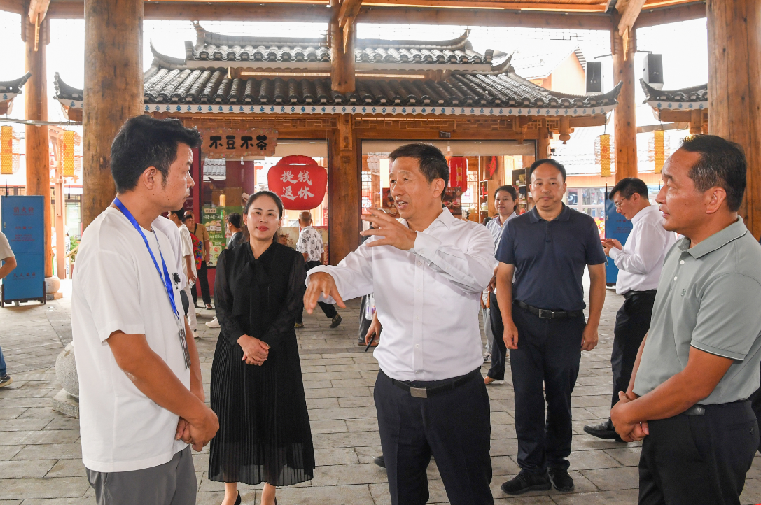 (許忠建在榆樹灣現(xiàn)場檢查假期旅游市場服務(wù)保障情況,與經(jīng)營業(yè)主交流,了解旅游消費(fèi)情況,聽取意見建議。以上照片均由懷化日報(bào)全媒體記者 楊智偉 攝)