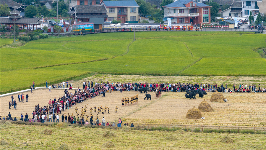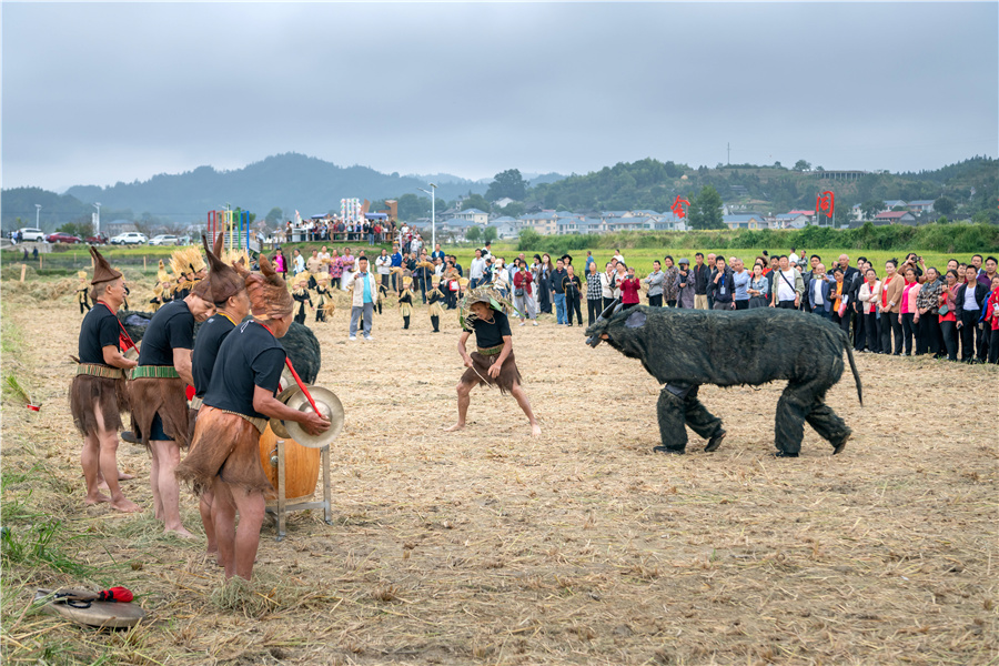 9月23日,中國農(nóng)民豐收節(jié),會同縣的稻香詩田景區(qū)內(nèi)一派歡騰景象,成為慶祝豐收的熱鬧主場。田埂間稻浪翻滾,空氣中彌漫著清甜的稻香,一場場充滿鄉(xiāng)土氣息與歡樂氛圍的活動在此輪番上演——激昂的斗牛舞踏著鼓點躍動,金黃的草龍舞在人群中蜿蜒穿梭,拔河比賽的吶喊聲此起彼伏,還有趣味十足的抓鴨子游戲,讓參與者在追逐與歡笑中共享豐收的喜悅,將秋日的田園變成了一片歡樂的海洋。