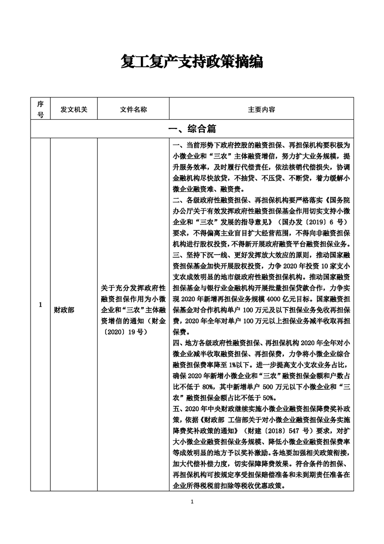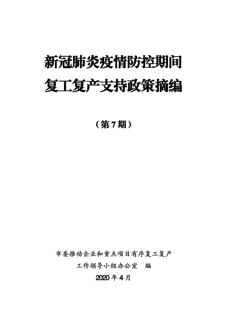 新冠肺炎疫情防控期間復工復產支持政策摘編(第7期)