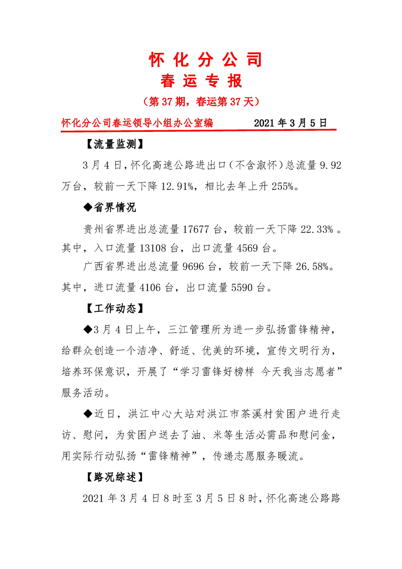省高速集團(tuán)懷化分公司第37期春運(yùn)專報(bào)