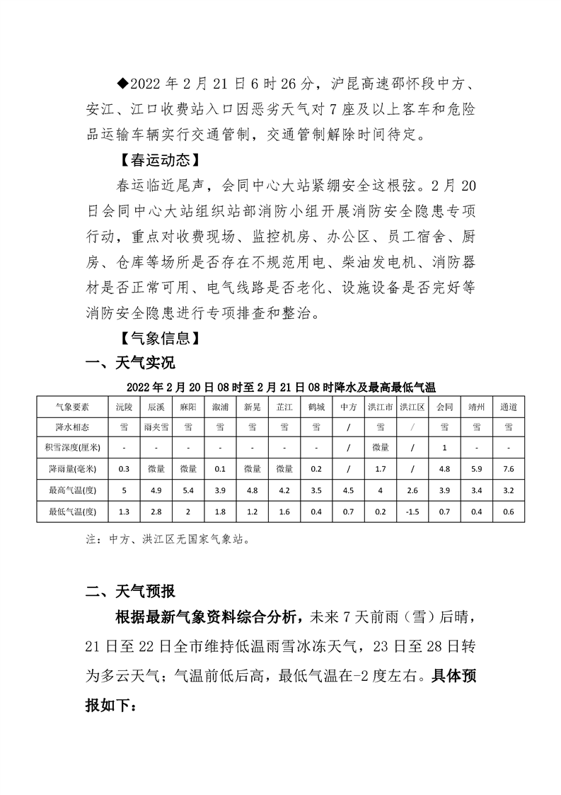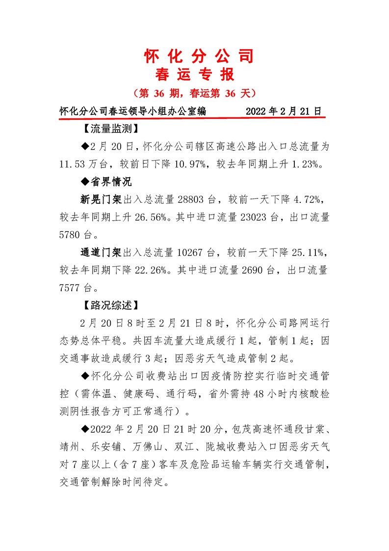 2022年高速懷化分公司第36期春運(yùn)專(zhuān)報(bào)