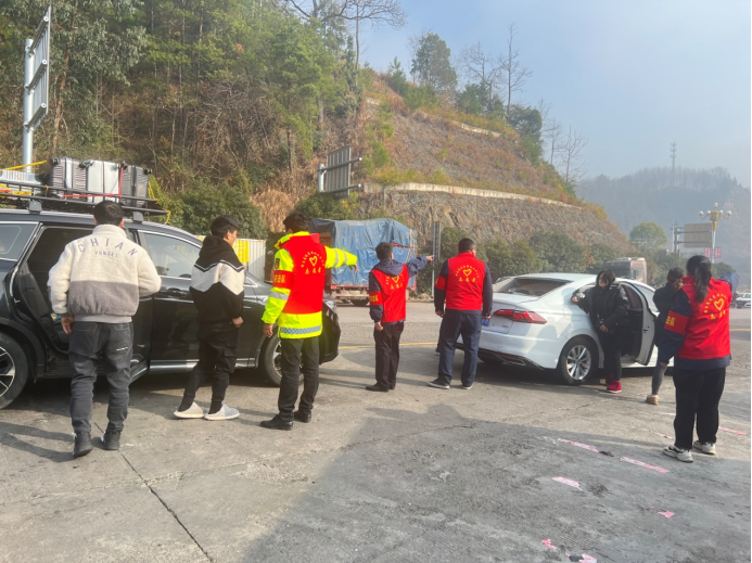 與此同時,在懷化高速公路各收費站、服務(wù)區(qū),到處都有身穿紅馬甲、投到小紅帽的“路燈”志愿者在人群車流中來回穿梭的身影,新春“?!弊帧⑴慕?、引導(dǎo)指路、發(fā)放口罩……一幕幕溫馨的畫面正在四處上演。“剛回到家鄉(xiāng)就收到這么大個‘?!?,新年一定好運連連。”在靖州收費站出口,周師傅領(lǐng)到一個大“福”字開心地說。