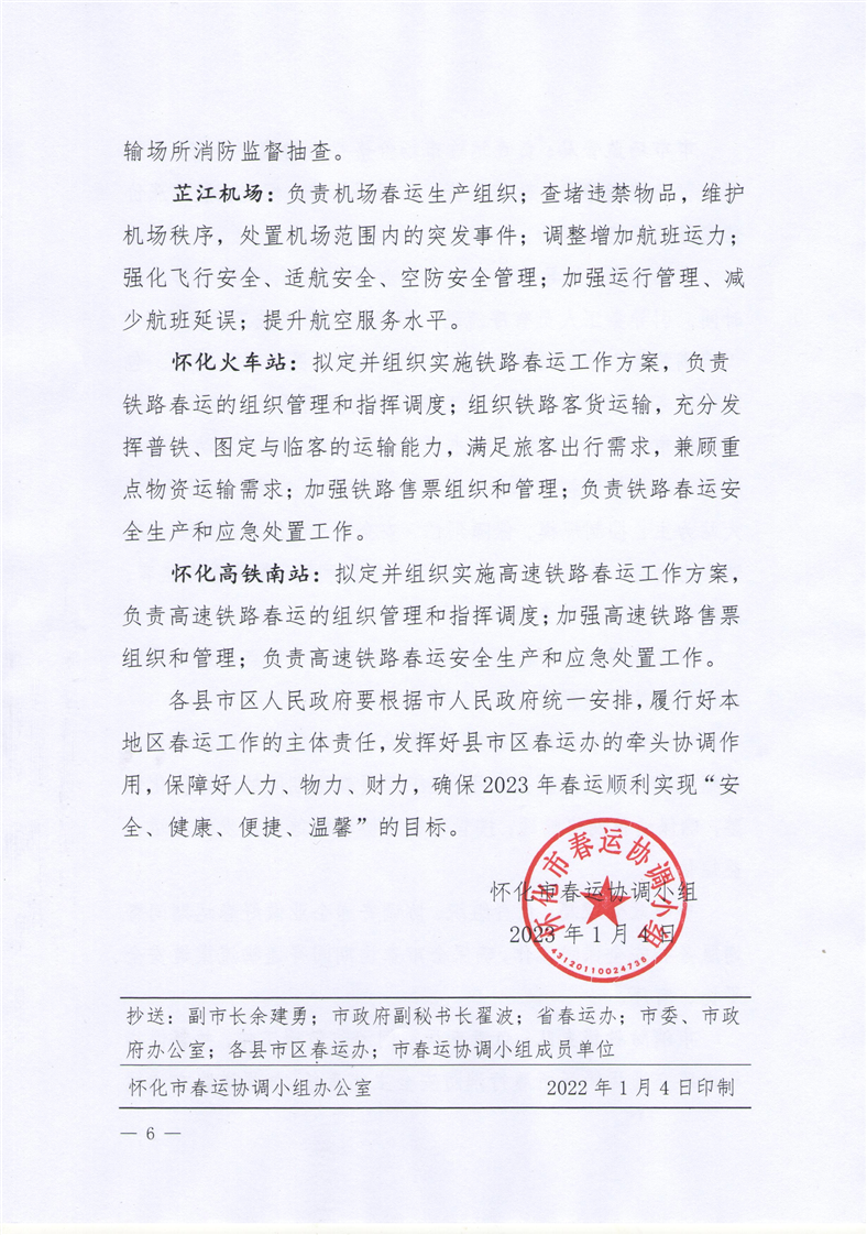 懷春運(yùn)〔2023〕1號(hào) 關(guān)于調(diào)整懷化市春運(yùn)協(xié)調(diào)小組成員名單及明確工作職責(zé)的通知