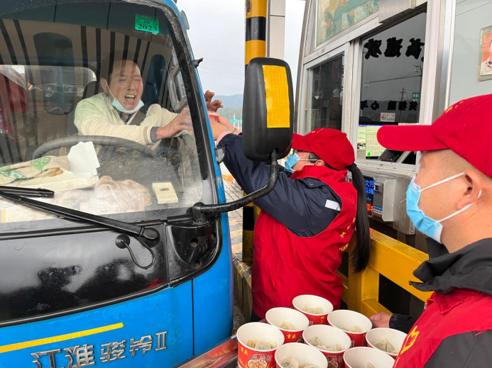 小年一大早,靖州收費站廚房里就忙碌起來,洗菜、切菜、剁肉餡、和面、包餃子,大家忙得不亦樂乎??斓街形鐣r,一盤盤熱氣騰騰的餃子出鍋后,第一時間被送到收費現(xiàn)場。“師傅,今天是小年夜,吃完水餃暖暖胃?!薄奥窡簟敝驹刚邔⒁煌胪胨溗徒o司乘的同時,也送去了一份新年祝福。“這是我今年吃過最好吃的餃子,吃在嘴里、暖在心里,是家鄉(xiāng)的味道……”一位從深圳回家過年的司機(jī)朋友豎起大拇指連連稱贊。