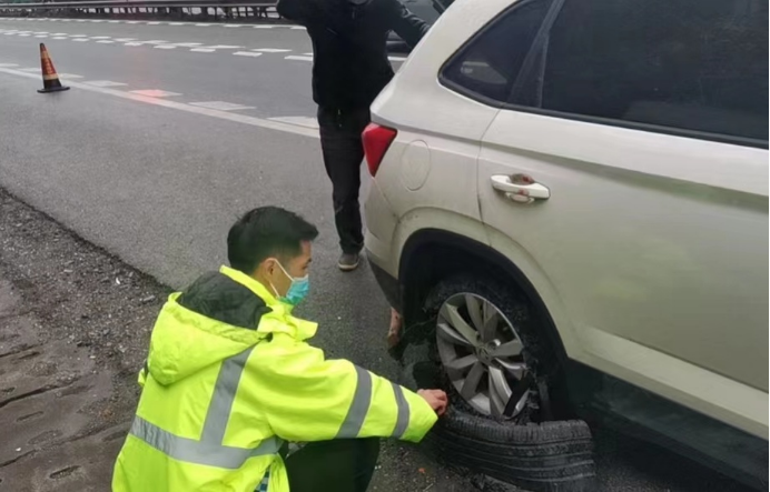 上午9時許,在G60滬昆高速公路東向西方向K1378+650M處,一輛小車因右后輪爆胎停在應(yīng)急車道上。而司機(jī)沒有換胎經(jīng)驗,只能在原地干著急。所幸雪峰山管理所巡查人員在巡查過程中及時發(fā)現(xiàn),并用隨車維修工具迅速幫其換好輪胎。