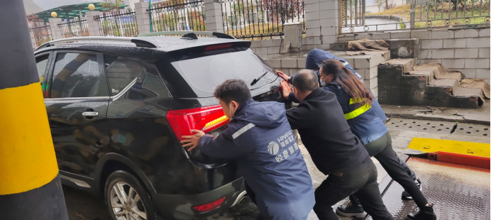 中午時分,在興隆收費站,一輛黑色小車正常繳費后突發(fā)故障,多次打火后仍無法啟動。收費站工作人員幫助司機(jī)將車推至安全區(qū)域,并幫司機(jī)聯(lián)系了附近的汽修廠。對收費站工作人員的熱心幫助,司機(jī)連連表示感謝。