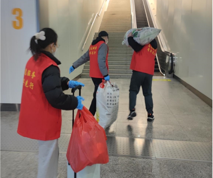 青年志愿者經(jīng)過培訓(xùn),穿上馬甲,奔赴服務(wù)崗位。青年志愿者們合理分工,有的在進站口提醒旅客提前準備好身份證,有的在安檢口協(xié)助行李過檢,有的在咨詢臺熱心答疑,對于老弱病殘等特殊群體,志愿者們還會進行送站服務(wù)。青年志愿者們不畏嚴寒,堅守崗位,積極熱情地開展春運服務(wù)工作,紅色的身影不停穿梭在旅客中間,以自身的行動溫暖旅客的回家路!