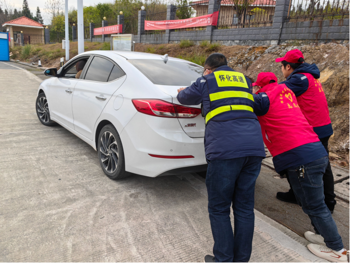 大年初二,在江市收費站,一輛小轎車因燃油耗盡,無法啟動。由于身處異地司機臉上寫滿了焦慮與不安。收費站工作人員發(fā)現(xiàn)司機的難處后, 合力把車推至收費廣場安全區(qū)域。隨后帶駕駛員到附近加油站購買汽油,并幫助司機加上汽油,重新踏上旅途。