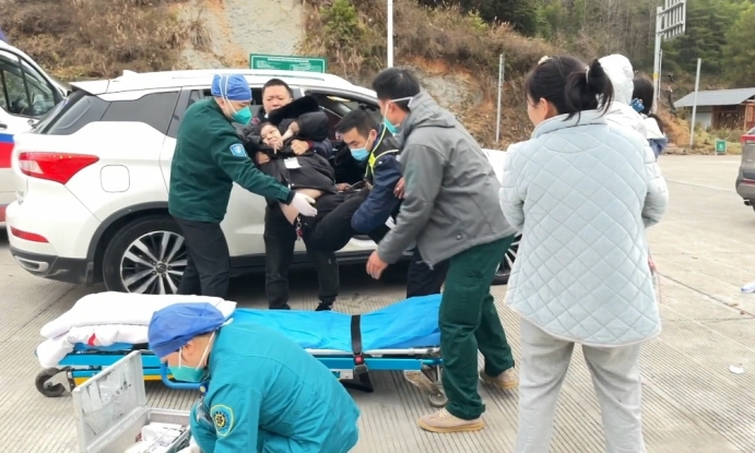 大年初一上午,一輛粵B越野車通過萬佛山收費站時,駕駛員向收費站工作人員尋求幫助。原來,車上一位老人突發(fā)疾病,面色蒼白,表情痛苦,無法正常交流。收費班長了解情況后,立馬撥打120,同時將車輛引導(dǎo)到安全區(qū)域。十幾分鐘后,醫(yī)護人員趕到現(xiàn)場,收費班長協(xié)助醫(yī)護人員將暈厥老人抬上救護車送往醫(yī)院接受治療。