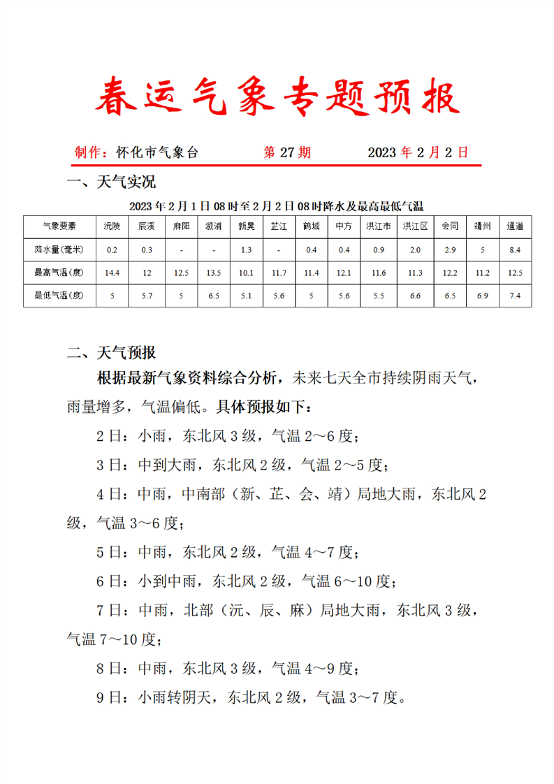 春運氣象專題預(yù)報 第27期