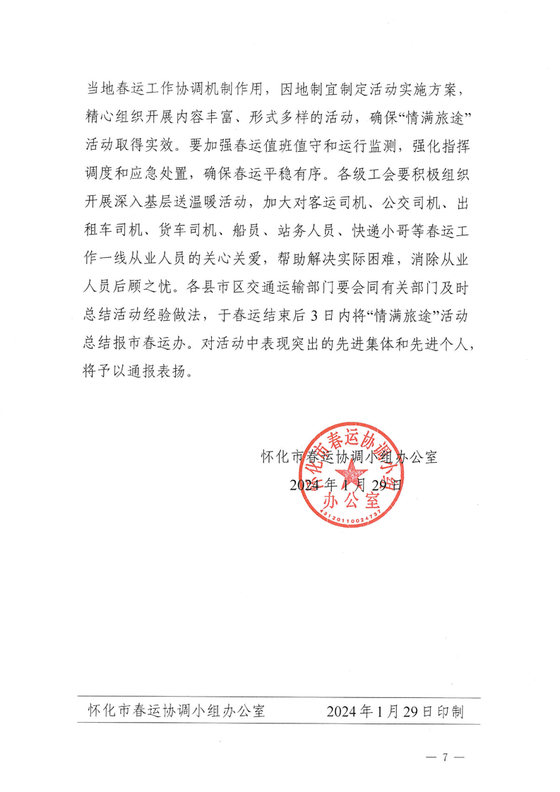 懷化市春運協(xié)調小組辦公室關于深入開展春運“情滿旅途”活動的通知