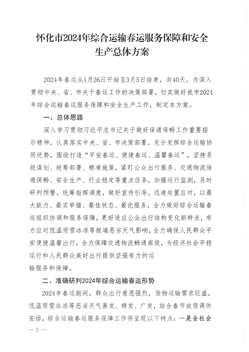 懷化市春運辦關(guān)于印發(fā)《懷化市2024年綜合運輸春運服務(wù)保障和安全生產(chǎn)總體方案》的通知