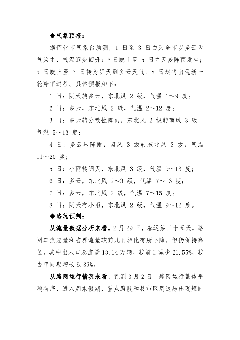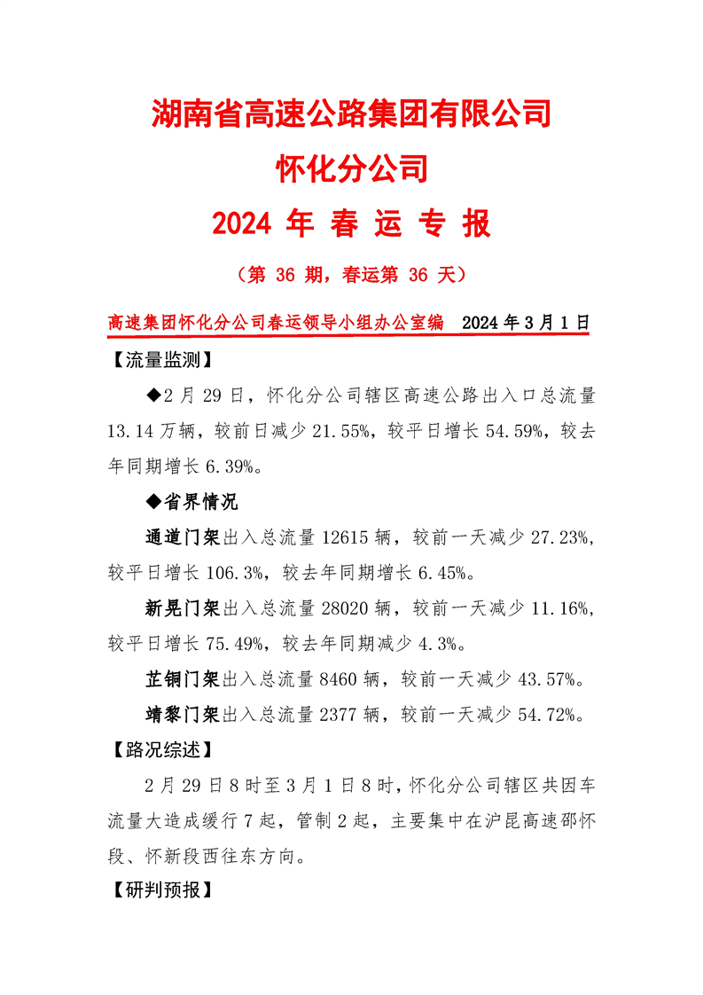 2024年懷化分公司春運專報-第36期