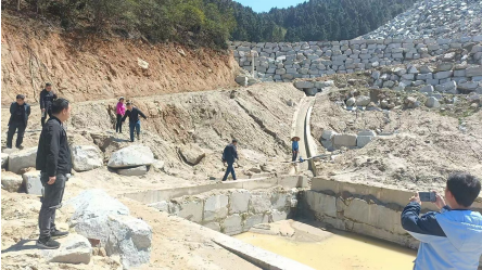 當(dāng)天,牽頭單位洪江市自然資源局組織市水利局、懷化市生態(tài)環(huán)境局洪江市分局、洪江市農(nóng)業(yè)農(nóng)村局、洪江市灣溪鄉(xiāng)人民政府,到舉報點灣溪鄉(xiāng)云峰村涉事礦業(yè)公司現(xiàn)場進行核實。經(jīng)過現(xiàn)場觀測勘查和相關(guān)證照及批文收集,確認礦山自2021年12月30日采礦許可證到期后一直停采,該區(qū)域臨時用地手續(xù)、環(huán)評手續(xù)齊全,沒有占用耕地的情況。場內(nèi)廢水經(jīng)收集沉淀處理后全部循環(huán)使用,修建有一座雨水收集池和應(yīng)急處理池等循環(huán)設(shè)備用以實現(xiàn)雨污分離。工作人員和當(dāng)?shù)厝罕娨黄鸬匠恋沓?、雨水出水口及附近農(nóng)田實地查驗,發(fā)現(xiàn)沉淀池出水較清澈,無泥沙,附近農(nóng)田和雨水出水口水流清澈,沒有泥沙流入農(nóng)田,但在棄土場底部附近有約十多平方米旱土被少量的泥沙掩蓋。當(dāng)即對企業(yè)負責(zé)人提出整改要求,目前涉事企業(yè)組織人員按照方案已完成對棄土場底部附近旱土泥沙的全面清理,共清理泥沙約2m3,疏通水渠約5米,安裝了水閥1個。