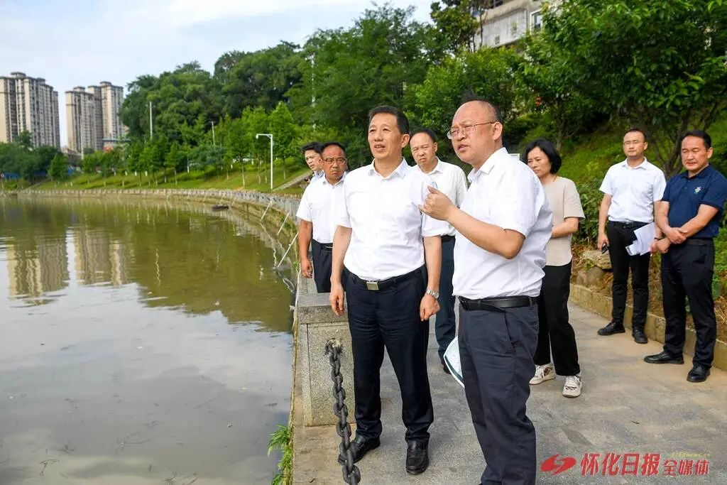 5月27日下午,市委書記許忠建督導(dǎo)檢查中央生態(tài)環(huán)境保護督察典型案例整改工作。圖為許忠建在太平溪84號排污口實地查看管網(wǎng)改造、污水收集處理和排放情況。(懷化日報全媒體記者 楊智偉 攝)