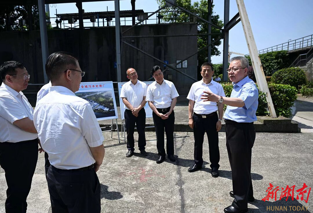 沈曉明在懷化市全城污水處理廠實(shí)地察看進(jìn)水口采樣點(diǎn)、中控室和實(shí)驗(yàn)室,了解監(jiān)測數(shù)據(jù)記錄、水樣檢測等情況