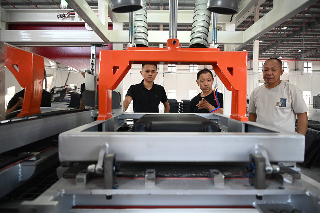 在湖南享懷箱包加工生產(chǎn)基地,一條條現(xiàn)代化的生產(chǎn)線整齊排列著,機(jī)器的轟鳴聲此起彼伏。流水線上,工人們熟練地操作著全自動(dòng)注塑機(jī)、全自動(dòng)縫線機(jī)等各種設(shè)備,裁剪、縫制、打包等一項(xiàng)項(xiàng)流程有條不紊地進(jìn)行著。