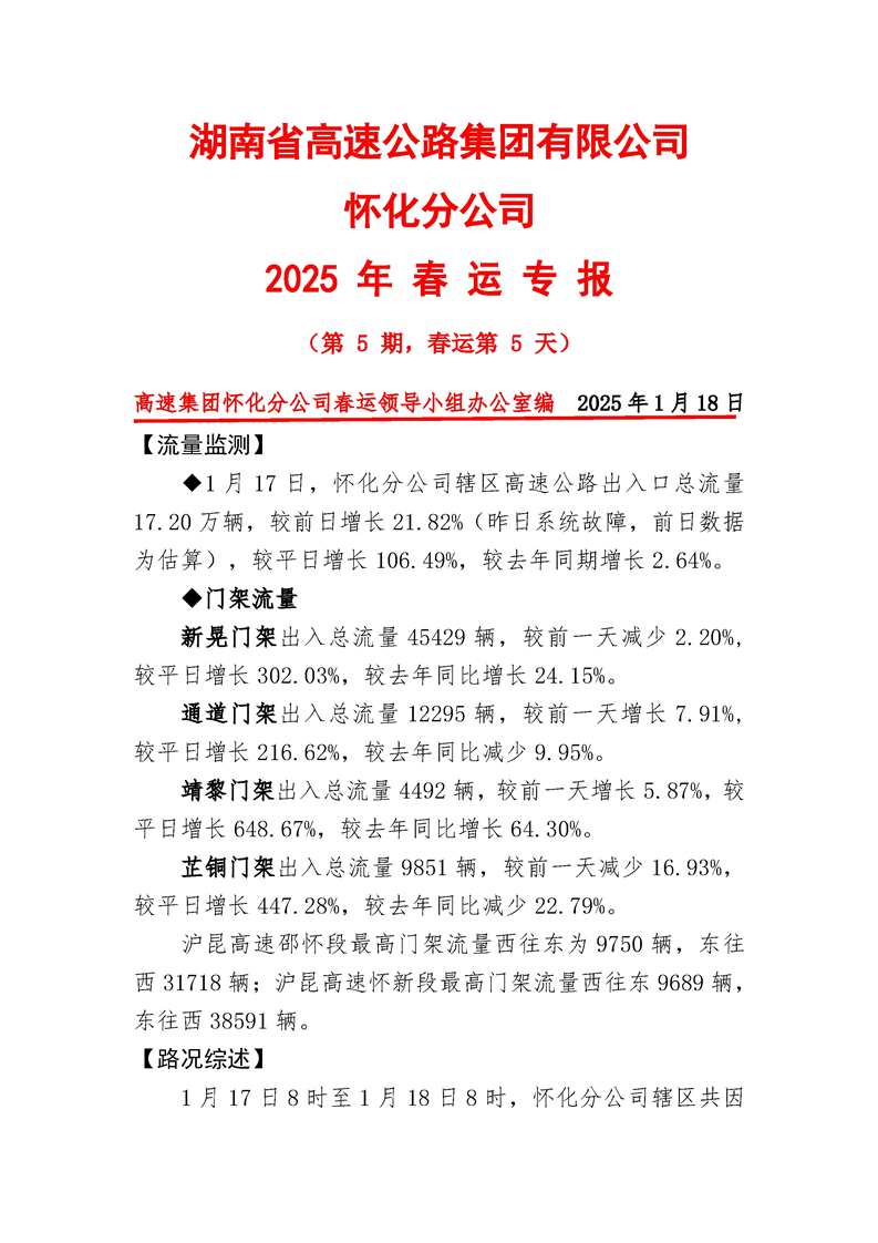 2025年懷化分公司春運(yùn)專報(bào)-第5期